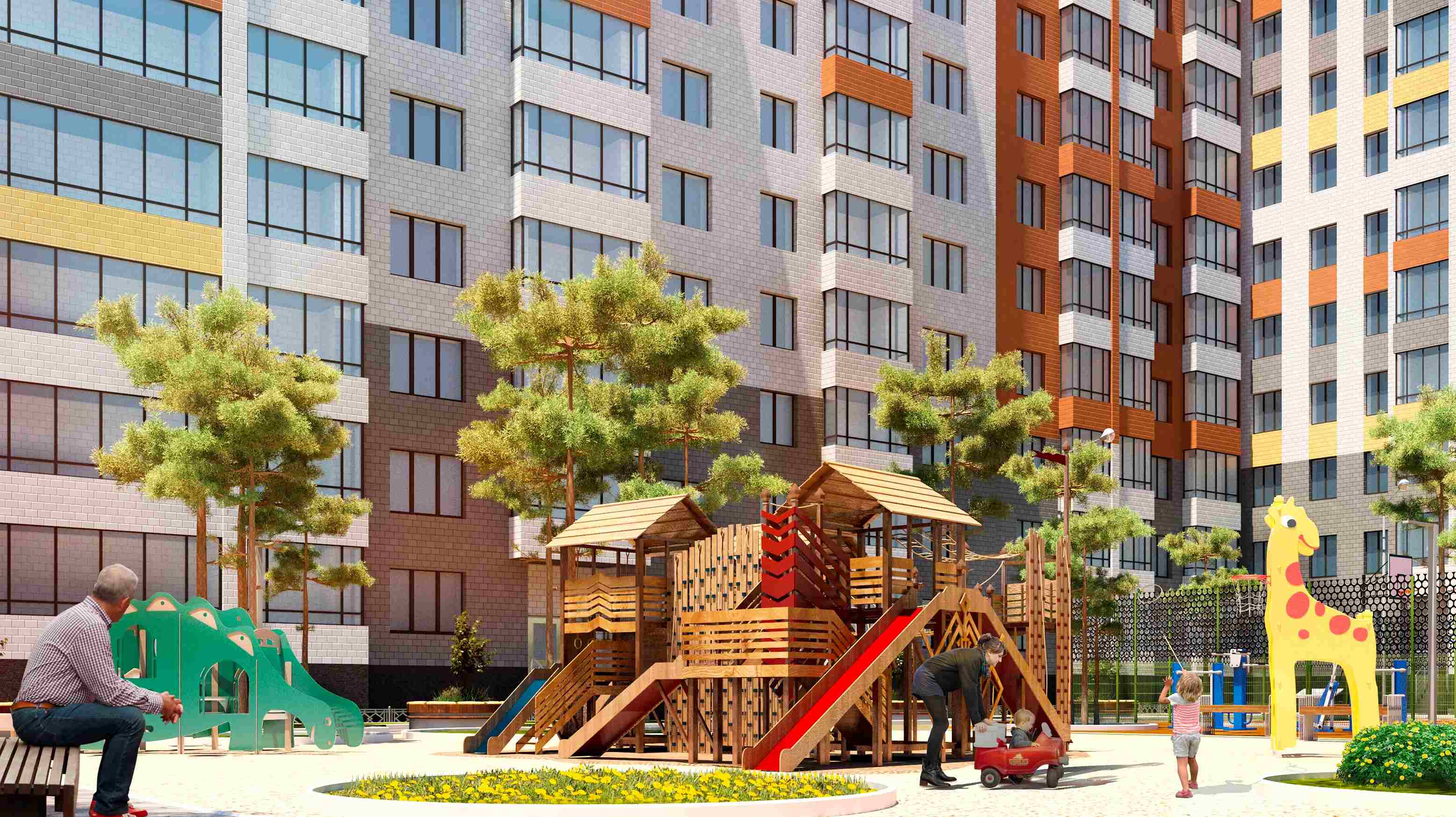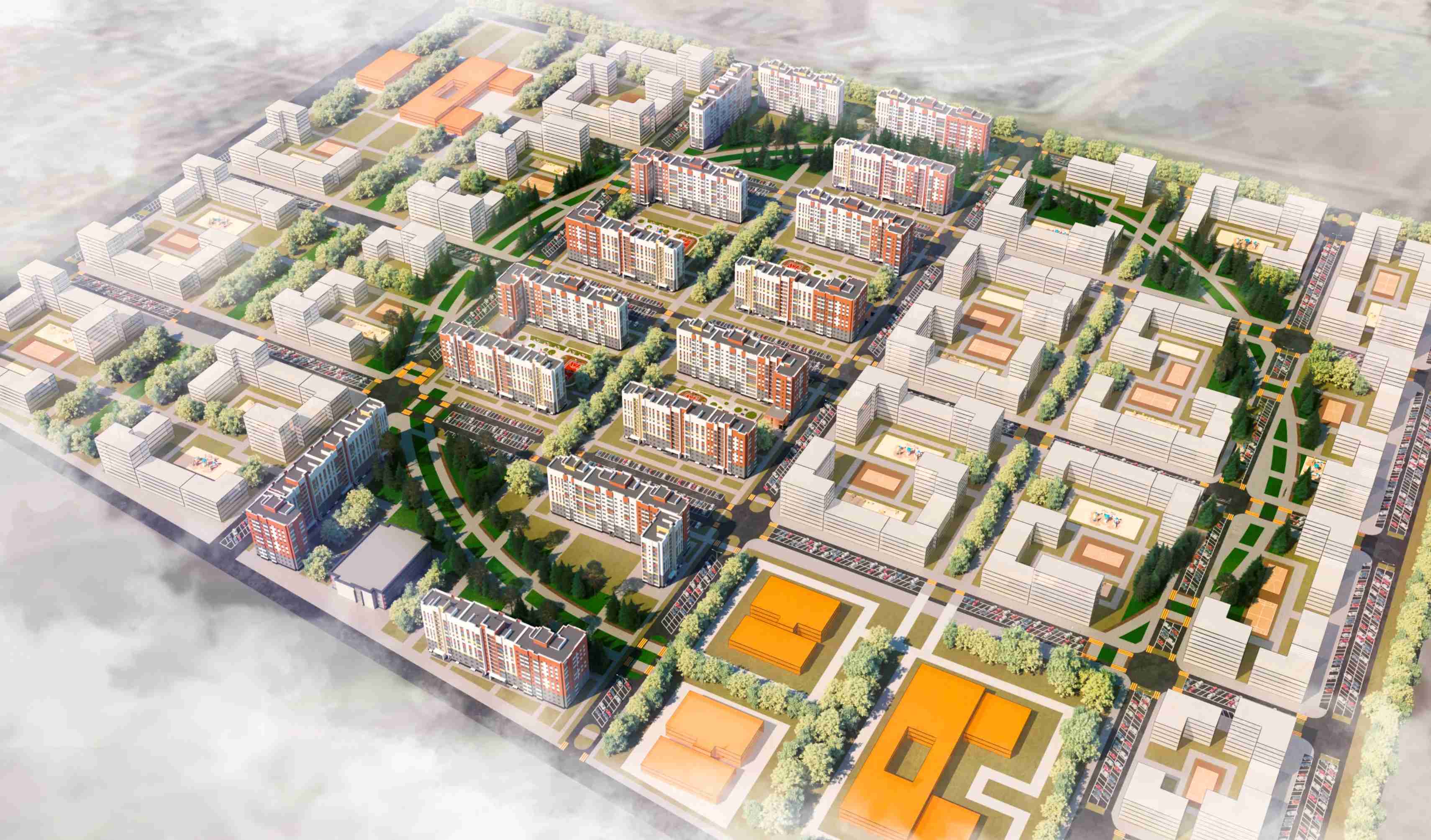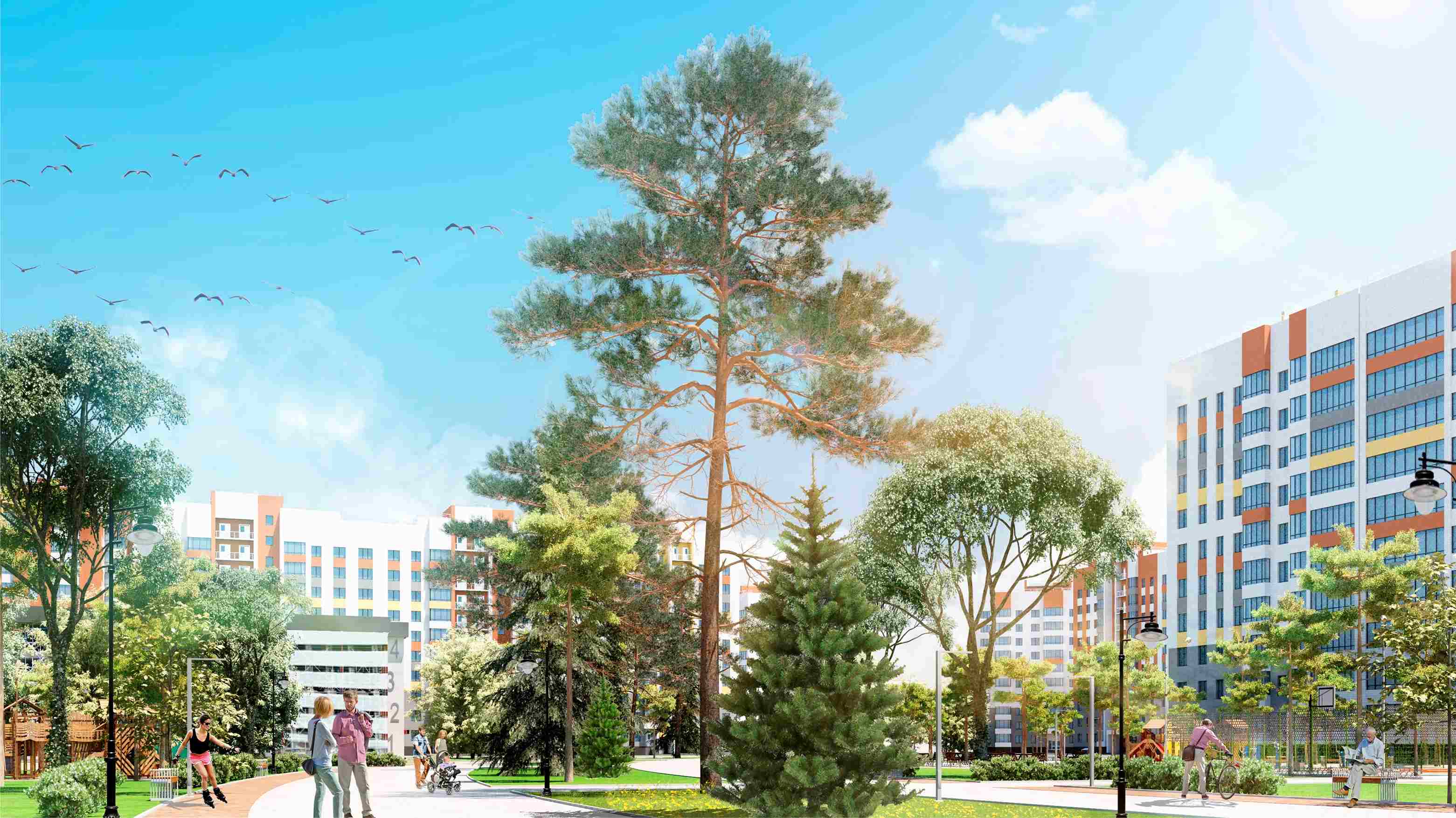 Застройщик – Новосибирский квартал, его проекты имеют множество положительных отзывов. В этом проекте компания решила возвести как панельные, так и кирпичные дома – обе технологии имеют свою аудиторию. Вместо парковок во дворах располагаются детские площадки, спортивные зоны и аллеи с зелёными насаждениями.