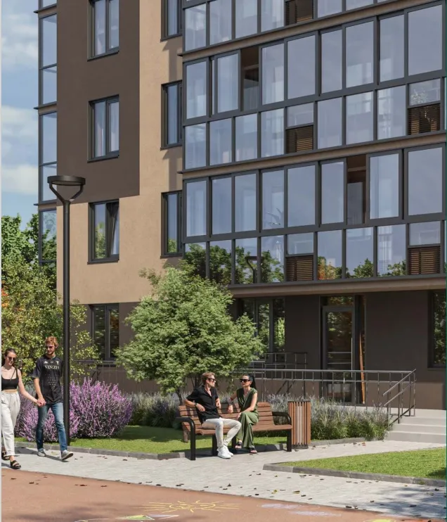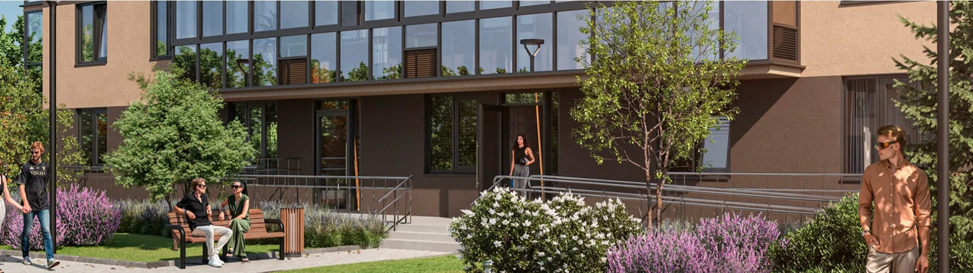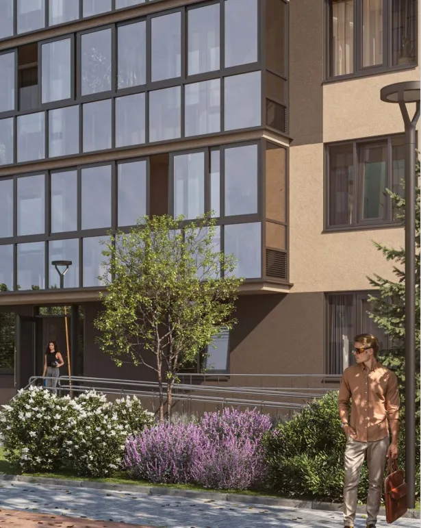 Во дворе есть места для занятий спортом, детских игр и спокойного отдыха. Здесь станет интересно жильцам разных возрастов. Также предусмотрены пандусы и понижающие бордюрные площадки для жильцов с ограниченными возможностями.